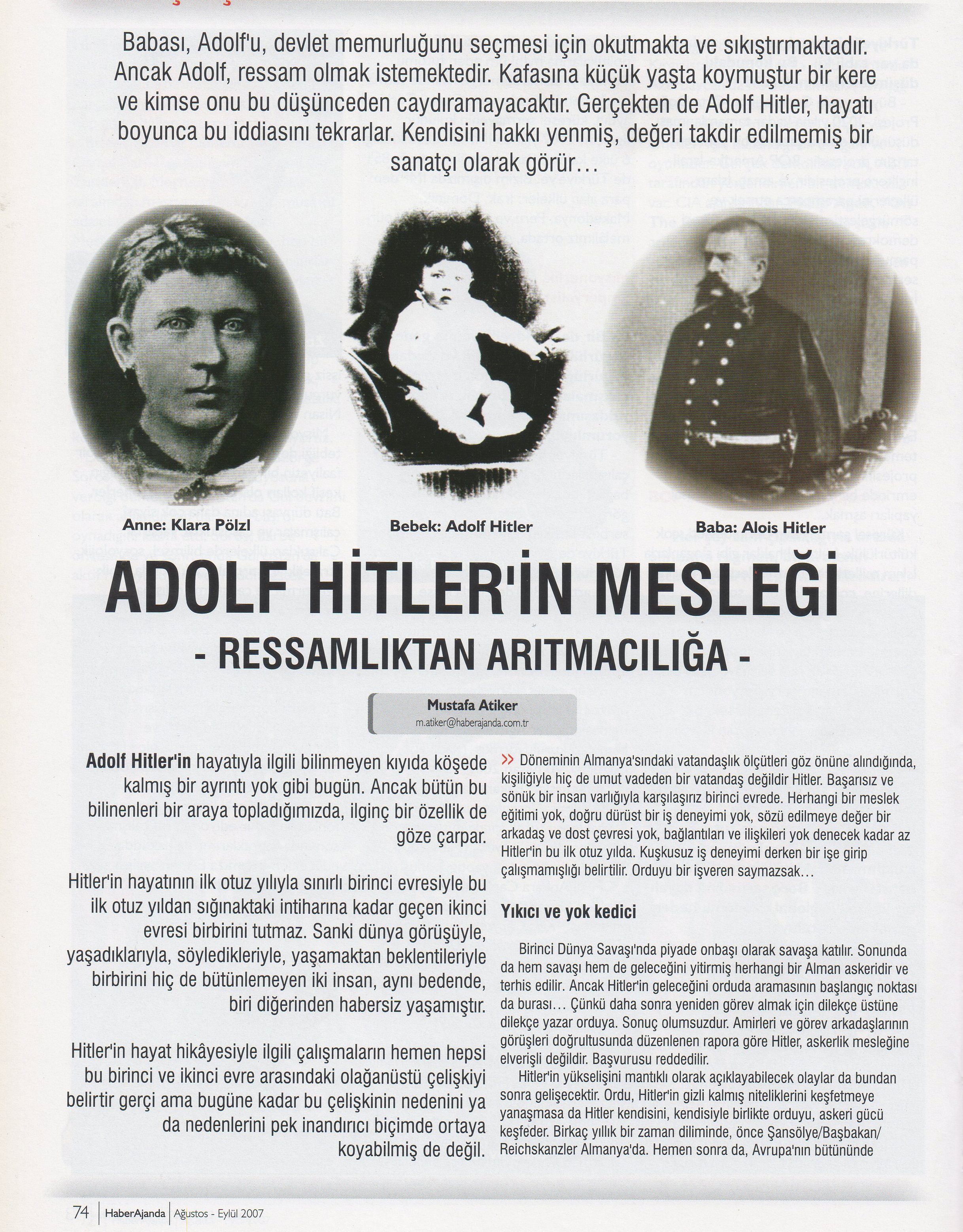 ADOLF HİTLER’İN MESLEĞİ (HİTLER VE SANAT)
