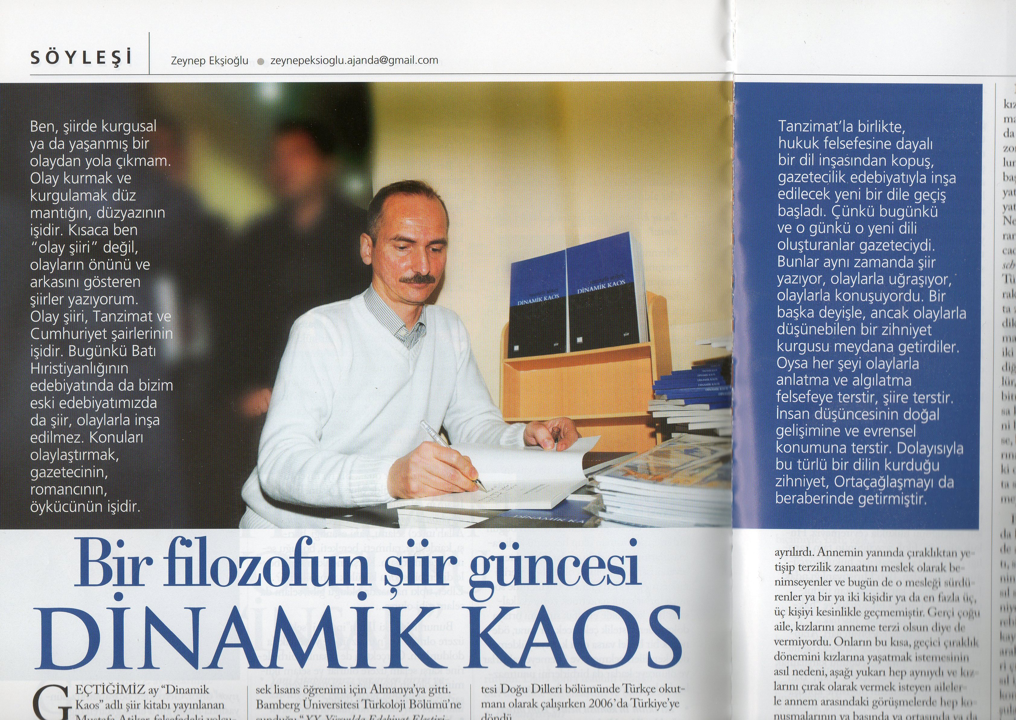Geçtiğimiz ay “Dinamik Kaos” adlı şiir kitabı yayımlanan Mustafa Atiker, felsefedeki yolculuğunu yansıtan şiirlerini topladığı kitabıyla ilgili sorularımızı cevapladı.