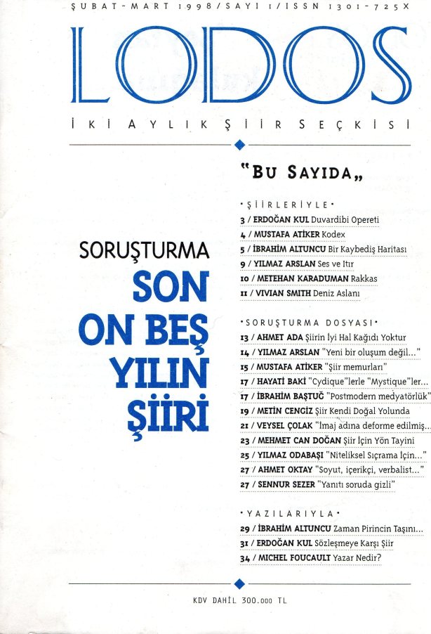Bu yazı, şairin Lodos Şiir’in Şubat 1998 tarihli birinci sayısında yer alan soruşturmaya verdiği cevaptır.