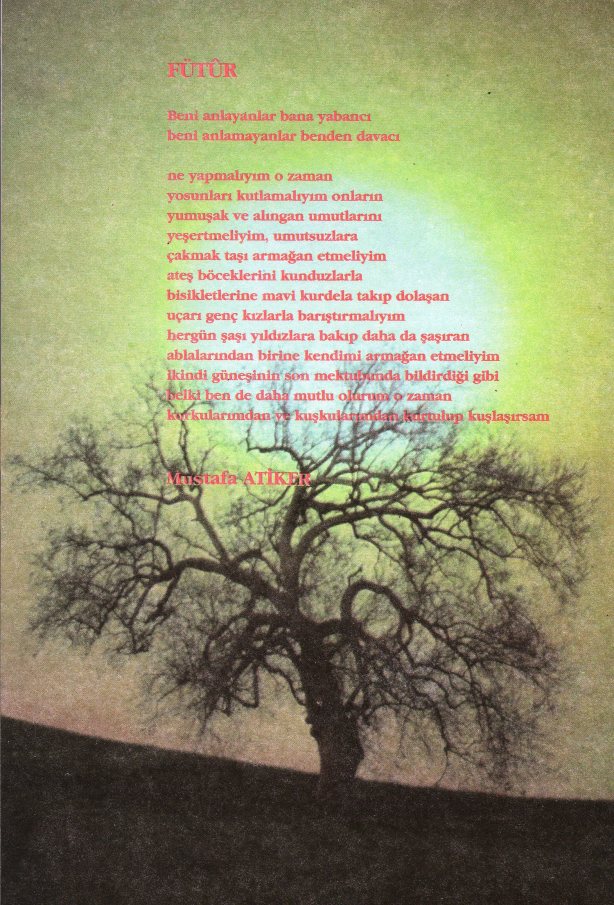Yayınlandı: 09 Eylül 2012 / ŞiirEtiketler:Alıntı: Edebiyat Bahçesi: Kültür Sanat ve Edebiyat Dergisi / Sayı 1 / Ekim-Kasım-Aralık 2008